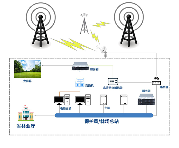 指揮中心:煙火識(shí)別預(yù)警系統(tǒng),AI識(shí)別煙火服務(wù)器,GIS輔助決策系統(tǒng)、中心儲(chǔ)存服務(wù)器,大屏幕等