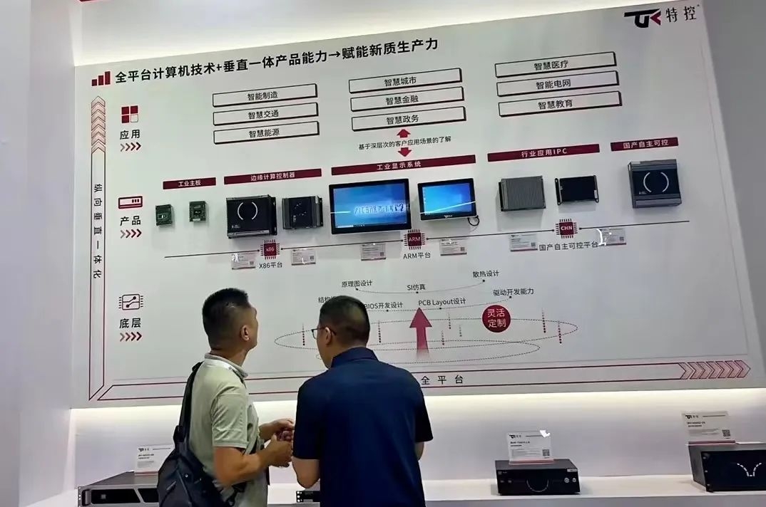 此次工博會(huì),特控也緊扣“工業(yè)聚能 新質(zhì)領(lǐng)航”的主題,通過橫向的全場景計(jì)算機(jī)技術(shù)解決方案與縱向的垂直一體化服務(wù)賦能新質(zhì)生產(chǎn)力。橫向方面,根據(jù)客戶的應(yīng)用場景,基于全平臺(tái)的計(jì)算機(jī)技術(shù):X86架構(gòu)、ARM架構(gòu)、國產(chǎn)化平臺(tái)進(jìn)行產(chǎn)品研發(fā);縱向方面,擁有從板卡到整機(jī)系統(tǒng)的完全自主研發(fā)和靈活定制能力,包括原理圖設(shè)計(jì)、PCB Layout設(shè)計(jì)、散熱設(shè)計(jì)、結(jié)構(gòu)設(shè)計(jì)、SI仿真、BIOS開發(fā)設(shè)計(jì)和驅(qū)動(dòng)開發(fā)能力等,為客戶產(chǎn)品質(zhì)量和品牌提供保障,幫助客戶在最短時(shí)間把產(chǎn)品推向市場。
